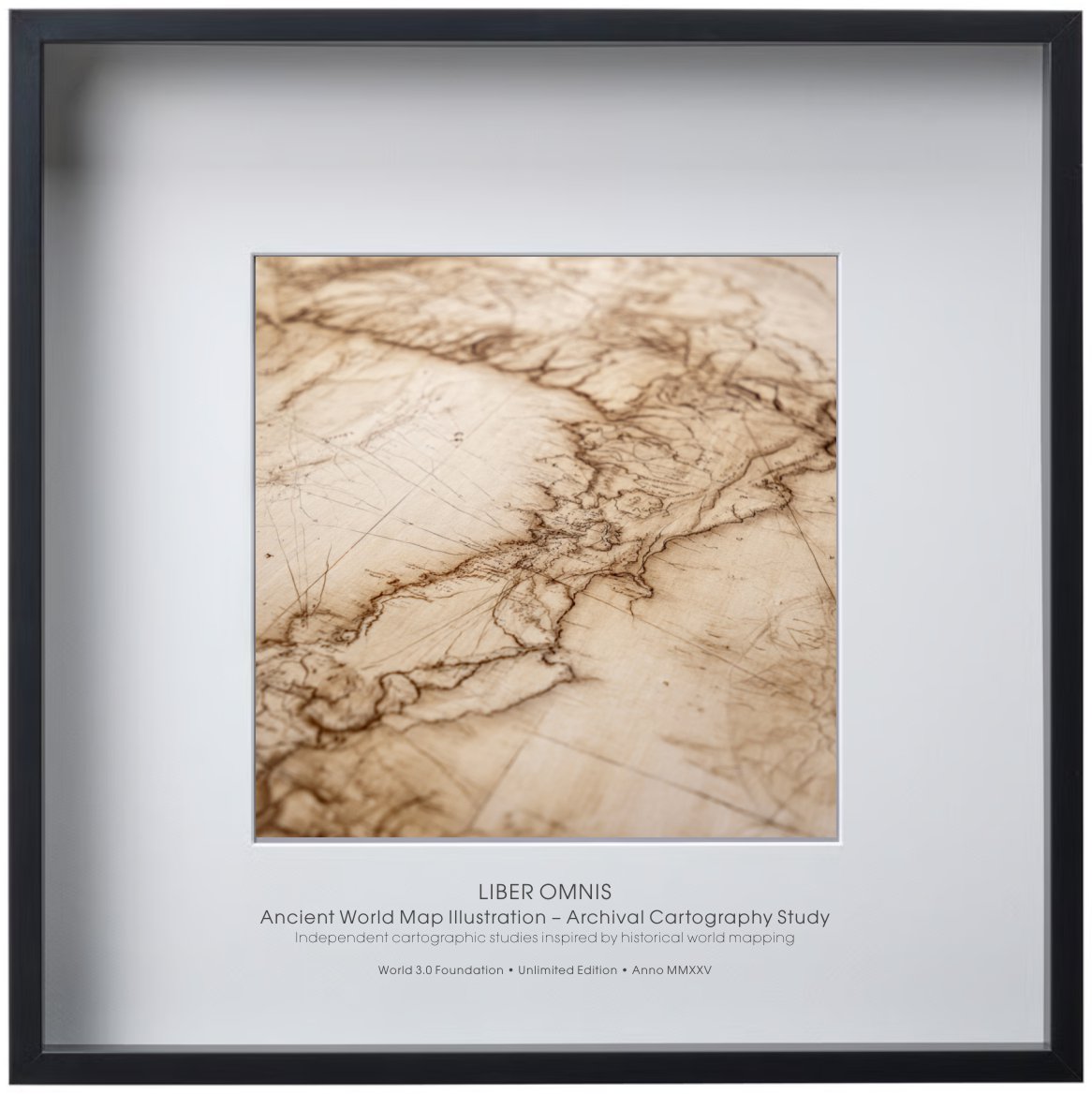 An ancient world map illustration inspired by archival cartography and early navigation manuscripts. The plate presents the world as a measured surface rather than a political construct. Fine linework and aged textures reinforce its scholarly character. A standalone piece without hidden meaning or system.