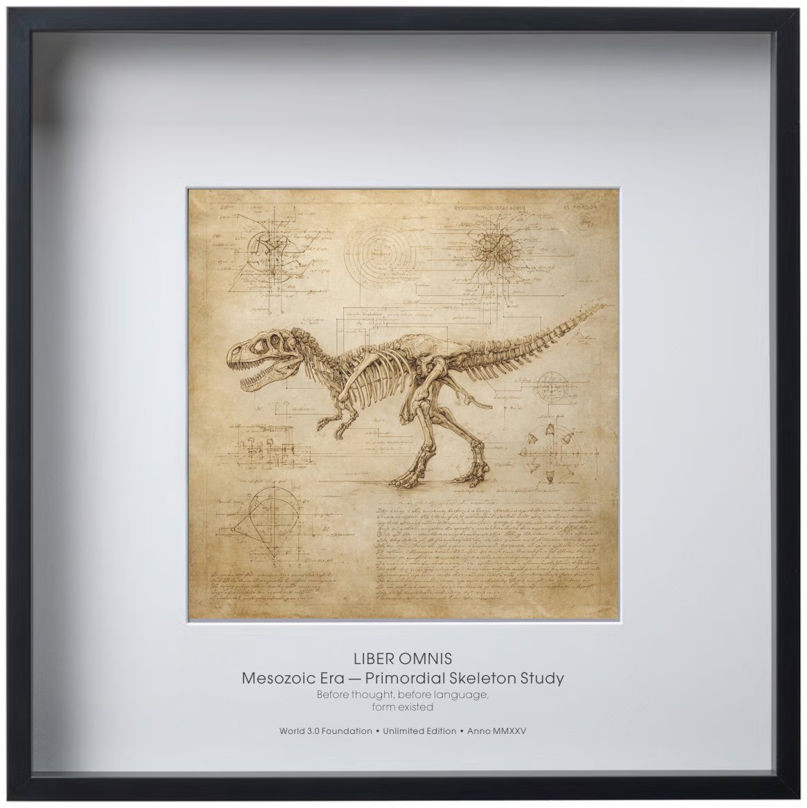 An independent art print inspired by Renaissance anatomy studies and the life forms of the Mesozoic era. This work focuses on structure rather than species, presenting anatomy as observation rather than explanation. Subtle ink lines and balanced composition create a contemplative, archival feel. Ideal for collectors interested in prehistoric form and classical scientific aesthetics.