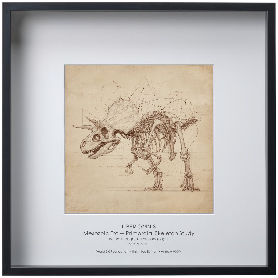 An artistic paleo skeletal study inspired by historical scientific illustration and anatomical research. The composition highlights form as a temporary dominion shaped by time and extinction. Ink lines remain soft and deliberate, reinforcing a sense of observation rather than spectacle. A timeless piece suited for contemporary and classical spaces alike.