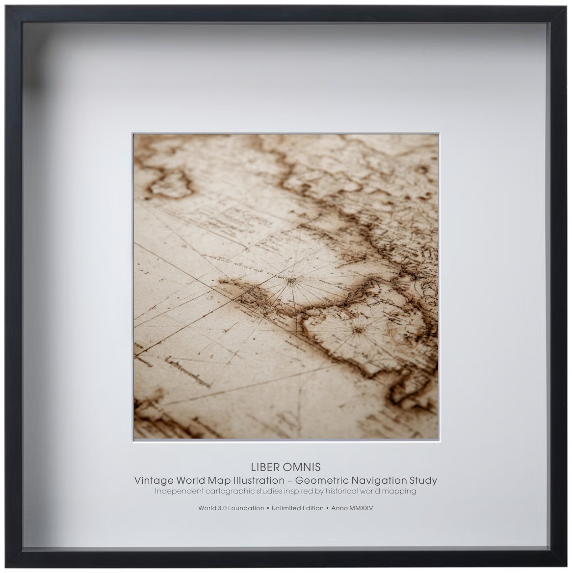 A historical cartography art print referencing early global projection systems and scientific mapping traditions. Fine ink lines and aged parchment tones create an archival, museum-like presence. The artwork focuses on geometry and spatial order rather than geographic accuracy. Created as an independent study without narrative or symbolic system.